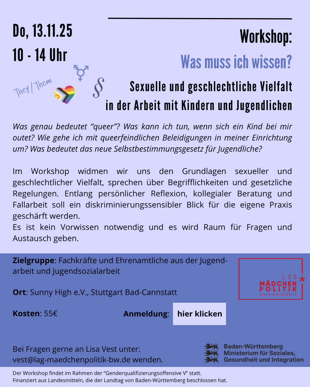 3. Workshop in Stuttgart: "Was muss ich wissen? Sexuelle und geschlechtliche Vielfalt in der Arbeit mit Kindern und Jugendlichen" - 13.11.2025