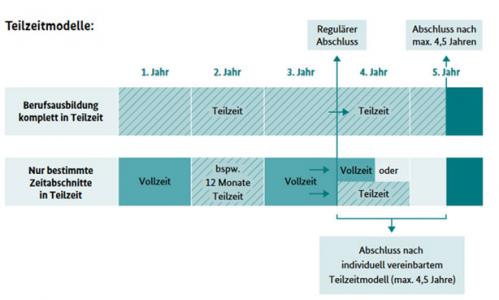 Seit dem 1. Januar 2020 können durch die Neuregelung des Berufsbildungsgesetzes alle Menschen von einer Teilzeitberufsausbildung profitieren. Neben Erziehenden oder Personen, die Familienangehörige pflegen, können nun auch beispielsweise Menschen mit Beeinträchtigungen oder Geflüchtete, die neben der Ausbildung noch einer Erwerbstätigkeit nachkommen wollen oder müssen, von der Möglichkeit einer Teilzeitberufsausbildung profitieren. Voraussetzung dafür ist wie bisher, dass sich Ausbildende und Auszubildende einig sind.